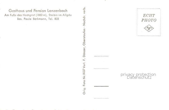 73802974 Steibis Oberstaufen Bayern Gasthaus Pension Lanzenbach mit Hochgrat postalisch nicht gelaufen Erhaltung siehe scans [WerneD78] Wern Katcode 11110009780132
