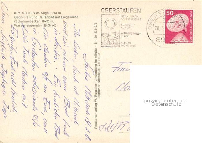 73644926 Steibis Oberstaufen Bayern Hallenbad Allgaeuer Alpen postalisch gelaufen Erhaltung siehe scans [FriedD77] alte Postkarte Frie Katcode 11110009780132
