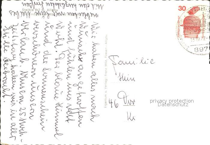 72190435 alte Postkarte Steibis Oberstaufen Bayern mit Rindalbhorn und Hochgrat Allgaeuer Alpen postalisch gelaufen Erhaltung siehe scans KatCode: 11110009780132