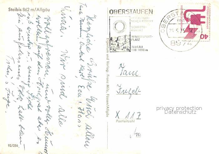 72840587 alte Postkarte Steibis Oberstaufen Bayern Teilansicht mit Rindalphorn und Hochgrat Allgaeuer Alpen postalisch gelaufen Erhaltung siehe scans [FriedD77] KatCode: 11110009780132