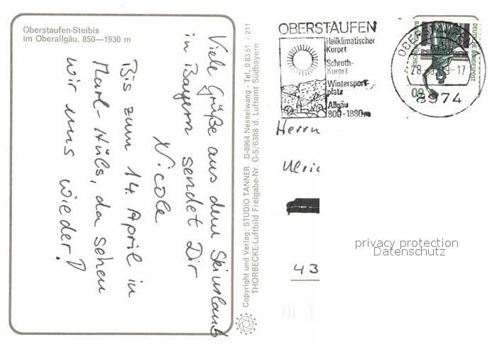 72716827 alte Postkarte Steibis Oberstaufen Bayern Winterpanorama Allgaeuer Alpen Fliegeraufnahme postalisch gelaufen Erhaltung siehe scans [FriedD77] KatCode: 11110009780132