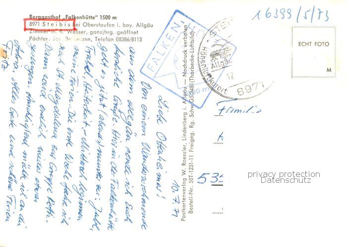 73759364 alte Postkarte Steibis Oberstaufen Berggasthof Falkenhuette postalisch gelaufen Erhaltung siehe scans [FriedD77] KatCode: 11110009780132