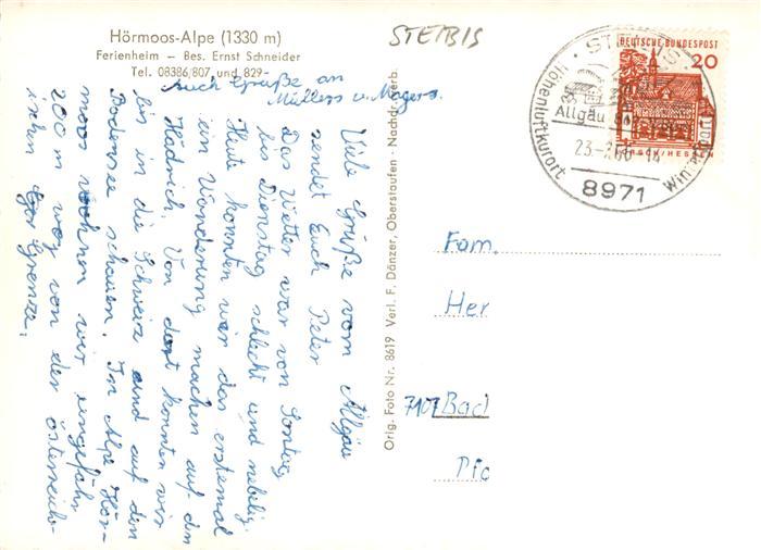 73913021 Steibis Oberstaufen Hoermoos Alpe Ferienheim postalisch gelaufen Erhaltung siehe scans [WerneD78] alte Postkarte Wern Katcode 11110009780132