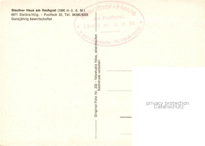 73080584 Steibis Staufner Haus Hochgrat postalisch nicht gelaufen Erhaltung siehe scans [KathaD81] KatCode: 11110009780132
