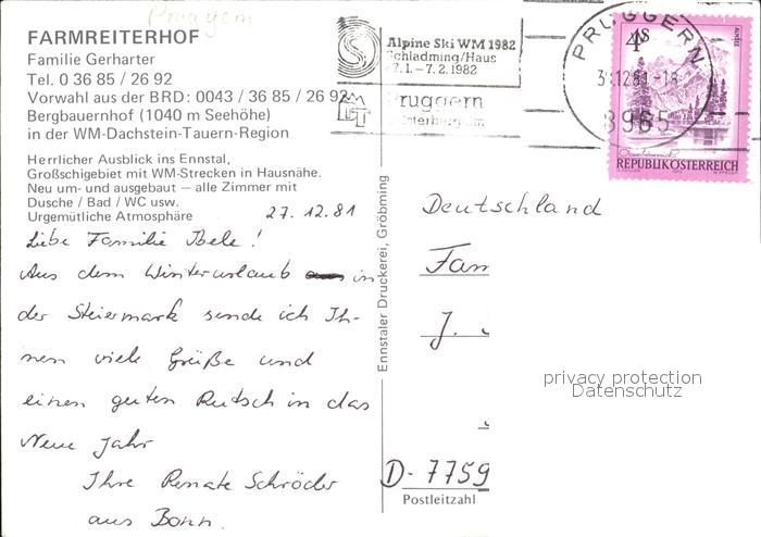 72490547 alte Postkarte Steiermark Farmreiterhof in der Dachstein Tauern Region postalisch gelaufen Erhaltung siehe scans KatCode: 11390