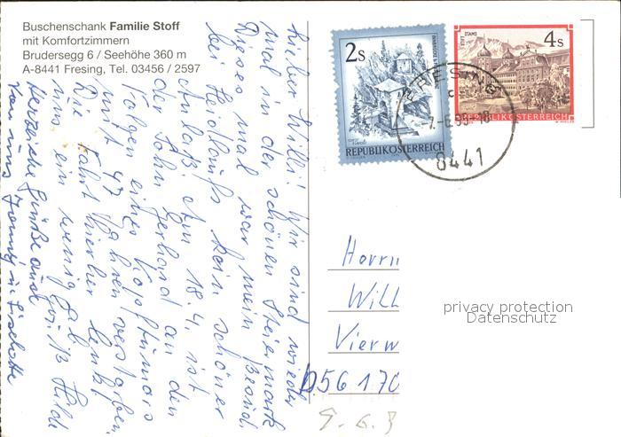 72291061 alte Postkarte Steiermark Fresing Buschenschank Stoff postalisch gelaufen Erhaltung siehe scans KatCode: 11390