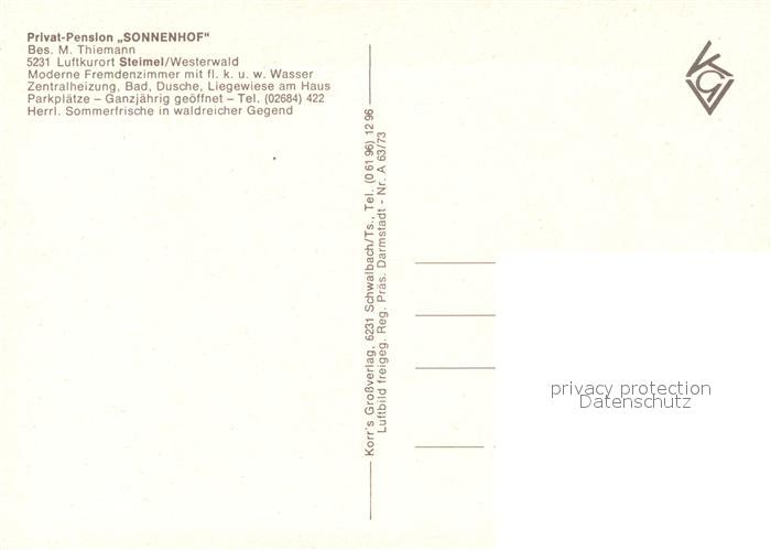 73106521 Steimel Altenkirchen Westerwald Fliegeraufnahme Privat Pension Sonnenhof postalisch nicht gelaufen Erhaltung siehe scans [KathaD81] KatCode: 11110007132501