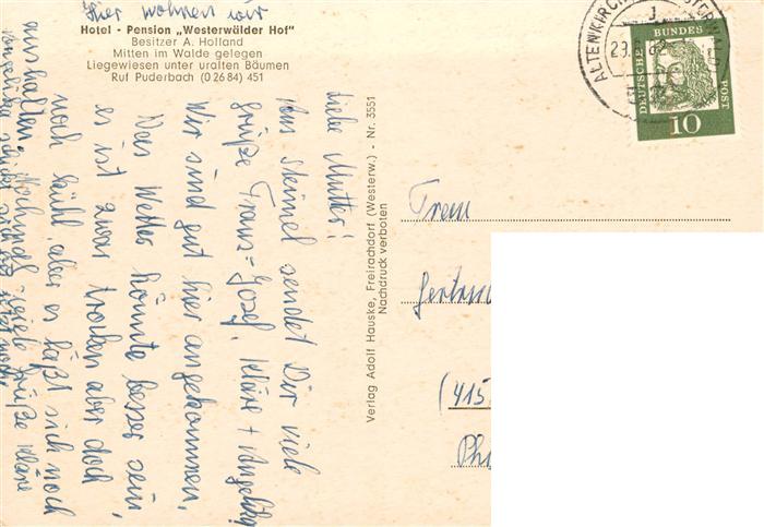 73878709 alte Postkarte Steimel Altenkirchen Westerwald Hotel Pension Westerwaelder Hof Gastraum Freibad postalisch gelaufen Erhaltung siehe scans [FriedD77] KatCode: 11110007132501