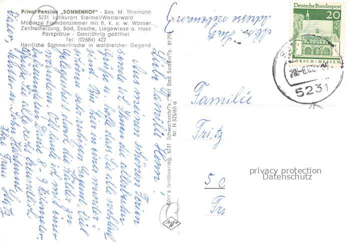 74005954 alte Postkarte Steimel Altenkirchen Westerwald Pension Sonnenhof Gaststube Zimmer postalisch gelaufen Erhaltung siehe scans [WerneD78] KatCode: 11110007132501
