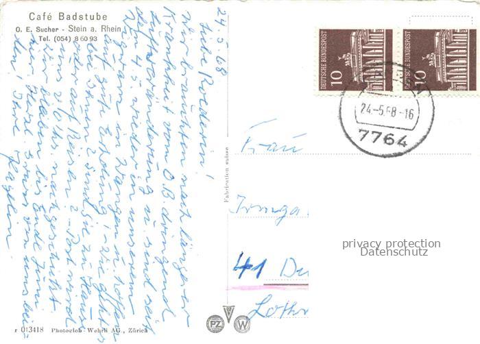 14109258 STEIN AM RHEIN SH Café Badstube Turm postalisch gelaufen Erhaltung siehe scans [FriedD77] alte Postkarte Frie Katcode 11470160470386