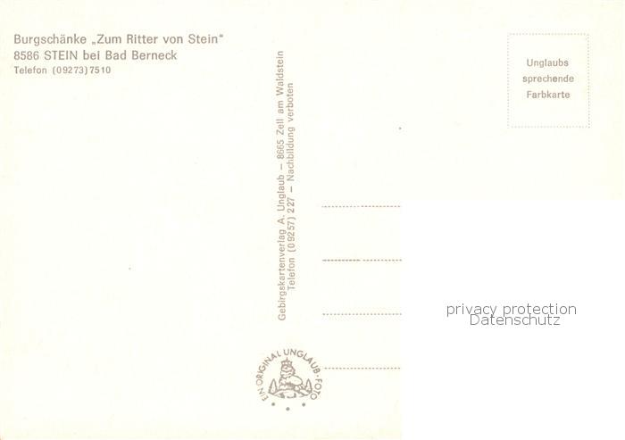 73835339 Stein Bad Berneck Burgschaenke Zum Ritter von Stein Landschaftspanorama Landkarte postalisch nicht gelaufen Erhaltung siehe scans [FriedD77] KatCode: 11110009472116