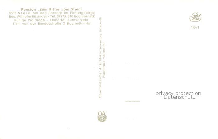 73652502 Stein Bad Berneck Pension Zum Ritter vom Stein postalisch nicht gelaufen Erhaltung siehe scans [WerneD78] KatCode: 11110009472116