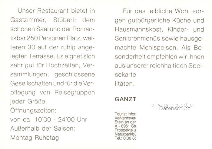 73589077 Stein Enns Restaurant Hubertus postalisch nicht gelaufen Keine Postkarte (siehe scan) Erhaltung siehe scans [PaolaD17] KatCode: 11390222061223
