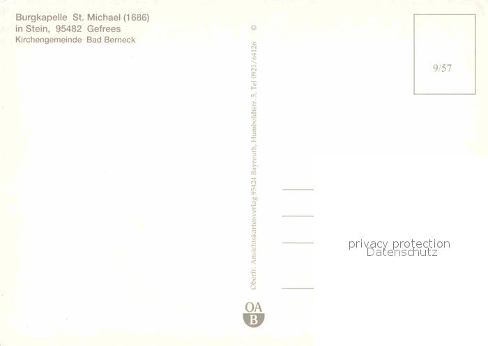 72743096 Stein Gefrees Burgkapelle St Michael postalisch nicht gelaufen Erhaltung siehe scans [FriedD77] KatCode: 11110009472139