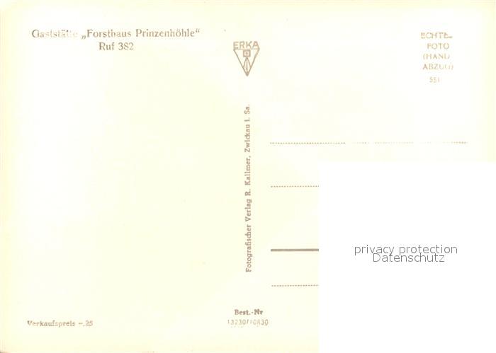 43497502 Stein Hartenstein Gaststaette Forsthaus Prinzenhoehle postalisch nicht gelaufen Erhaltung siehe scans [FriedD77] KatCode: 11110014193130