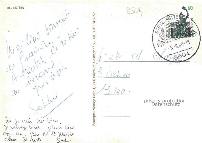 74049086 alte Postkarte Stein Nuernberg Freizeitbad Hauptstrasse Hotel Schloss postalisch gelaufen Erhaltung siehe scans [FriedD77] KatCode: 11110009573127