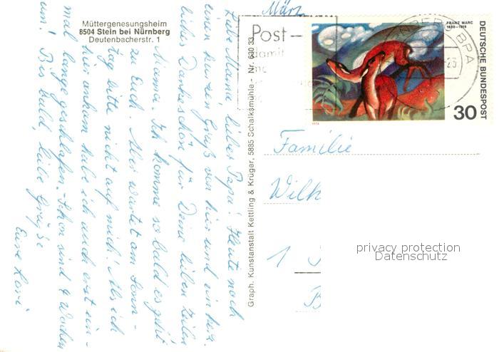 73645484 alte Postkarte Stein Nuernberg Muettergenesungsheim postalisch gelaufen Erhaltung siehe scans [WerneD78] KatCode: 11110009573127