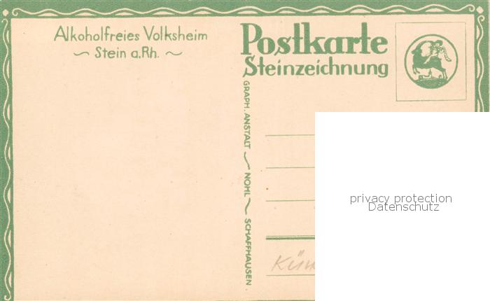 13798405 Stein Rhein SH Alkoholfreies Volksheim Schloss Steinzeichnung Kuenstlerkarte postalisch nicht gelaufen Erhaltung siehe scans [FriedD77] KatCode: 11470160470386