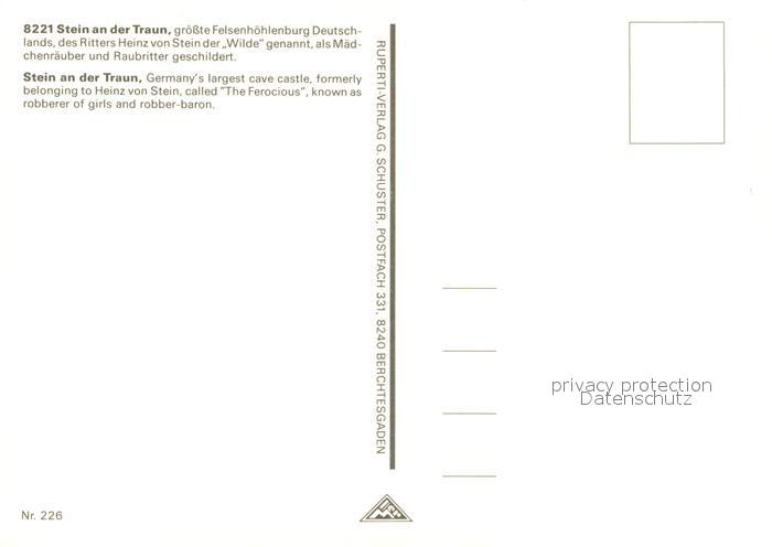 73260018 Stein Traun Felsenburg Schlosshof Felswand postalisch nicht gelaufen Erhaltung siehe scans [NatalD47] KatCode: 11110009189154