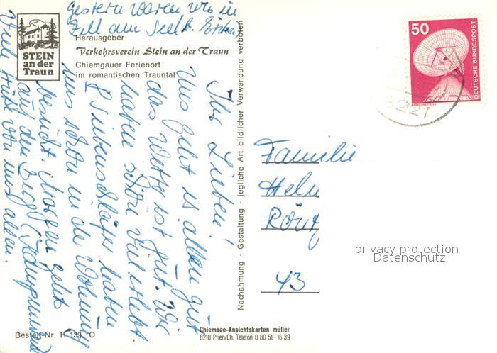 73670842 alte Postkarte Stein Traun Hotel Wappen Schlosshof mit Hoehlenburg St Georgen Burgbrunnen Frauenchiemsee postalisch gelaufen Erhaltung siehe scans [WerneD78] KatCode: 11110009189154