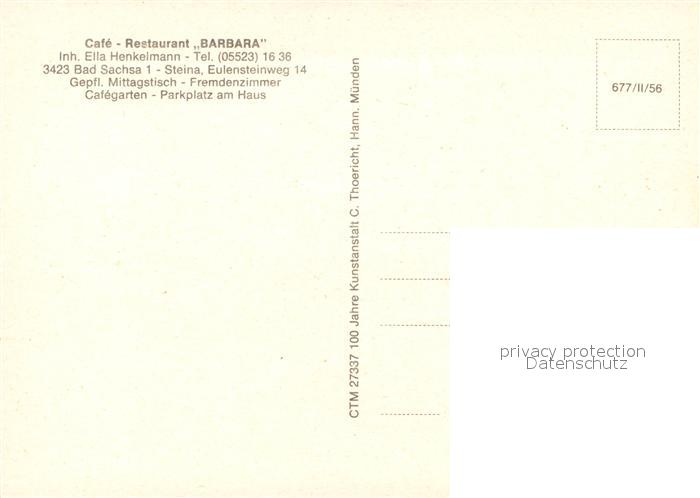 73571505 Steina Suedharz Cafe Restaurant Barbara Gaststube Gartenterrasse postalisch nicht gelaufen Erhaltung siehe scans [WerneD78] KatCode: 11110003156003