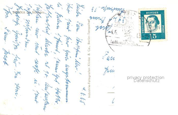 43349210 alte Postkarte Steina Suedharz Panorama Fliegeraufnahme postalisch gelaufen Erhaltung siehe scans [KathaD81] KatCode: 11110003156003