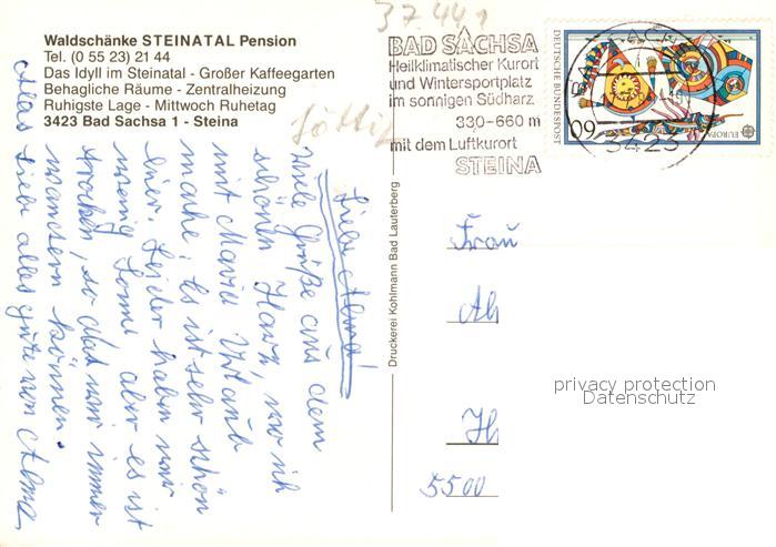 73099461 alte Postkarte Steina Suedharz Waldschaenke Steinatal Gastraeume Fliegeraufnahme postalisch gelaufen Erhaltung siehe scans [WerneD78] KatCode: 11110003156003