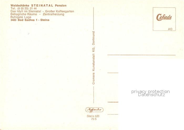 73086722 Steina Suedharz Waldschaenke Steinatal postalisch nicht gelaufen Erhaltung siehe scans [NatalD47] KatCode: 11110003156003