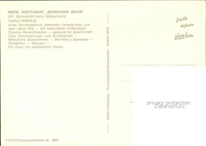 71937972 Steinach Baden Hotel Restaurant Schwarzer Adler postalisch nicht gelaufen Erhaltung siehe scans KatCode: 11110008317129
