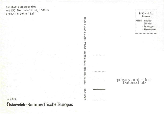 74044105 Steinach Brenner Tirol AT Sennhuette Bergeralm postalisch nicht gelaufen Erhaltung siehe scans [WerneD78] KatCode: 11390332070355