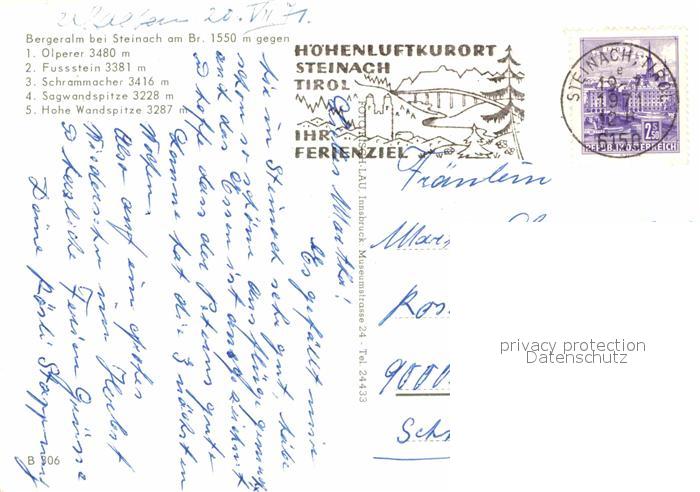 72840114 alte Postkarte Steinach Brenner Tirol Bergeralm mit Olperer Fussstein Schrammacher Hohe Wandspitze postalisch gelaufen Erhaltung siehe scans [WerneD78] KatCode: 11390332070355