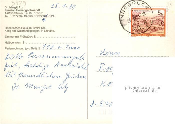 73209468 alte Postkarte Steinach Brenner Tirol Pension Herrengschwendt postalisch gelaufen Erhaltung siehe scans [FriedD77] KatCode: 11390332070355