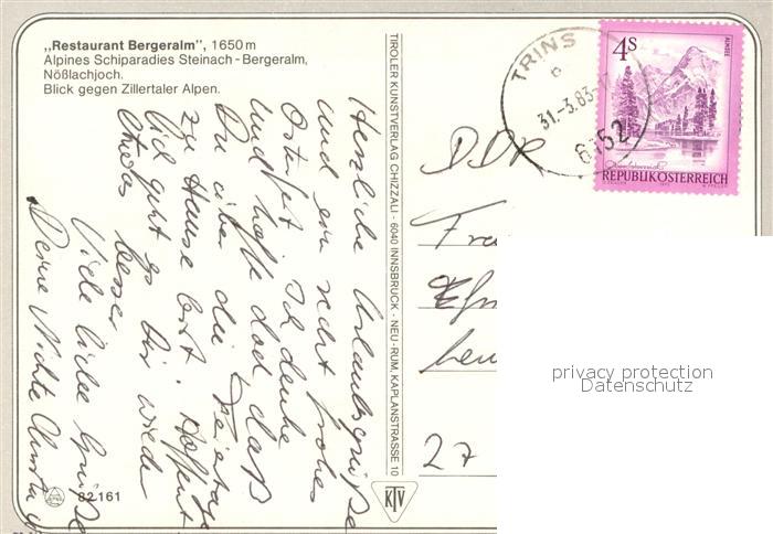 73683041 alte Postkarte Steinach Brenner Tirol Restaurant Bergeralm mit Noesslachjoch und Zillertaler Alpen postalisch gelaufen Erhaltung siehe scans [WerneD78] KatCode: 11390332070355
