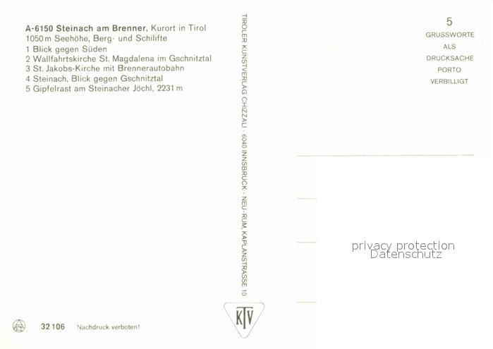 72846910 Steinach Brenner Tirol Wallfahrtskirche Sankt Magdalena postalisch nicht gelaufen Erhaltung siehe scans [KathaD81] KatCode: 11390332070355