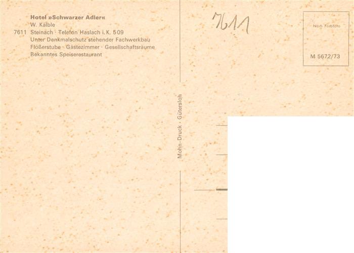 73928400 Steinach Kinzigtal Schwarzwald Hotel Schwarzer Adler Gastraeume postalisch nicht gelaufen Erhaltung siehe scans [FriedD77] KatCode: 11110008317129
