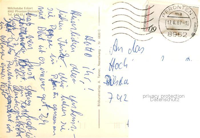 73836244 alte Postkarte Steinach Pfronten Milchstube Eckart Hochalm Aggenstein Zugspitzblick Allgaeuer Alpvieh Alphornblaeser Kienberg Achtal Pfronten Berg postalisch gelaufen Erhaltung siehe scans [WerneD78] KatCode: 11110009777159