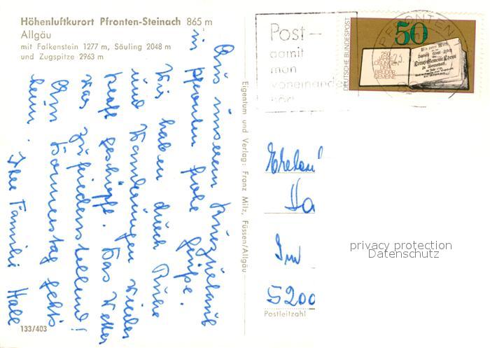 73173492 alte Postkarte Steinach Pfronten Zugspitze Saeuling Falkenstein postalisch gelaufen Erhaltung siehe scans [KathaD81] KatCode: 11110009777159