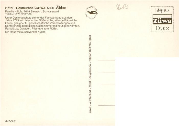 73931086 Steinach Schwarzwald Hotel Restaurant Schwarzer Adler postalisch nicht gelaufen Erhaltung siehe scans [FriedD77] Frie Katcode 11110008317129