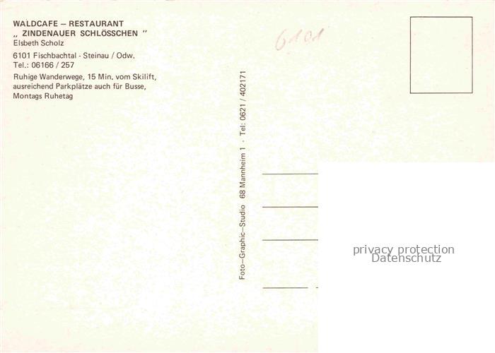 74043449 Steinau Fischbachtal Odenwald Hessen Waldcafé Restaurant Zindenauer Schloesschen Kaminzimmer postalisch nicht gelaufen Erhaltung siehe scans [FriedD77] KatCode: 11110006432007