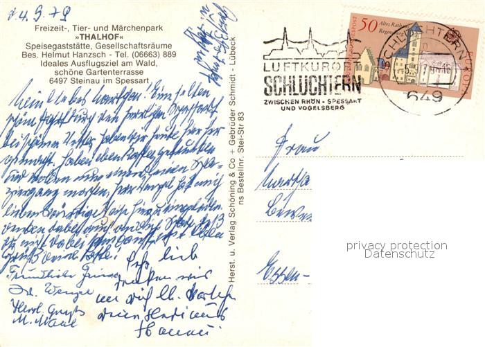 73203561 alte Postkarte Steinau Spessart Freizeitpark Tierpark Maerchenpark Gaststaette Thalhof postalisch gelaufen Erhaltung siehe scans [FriedD77] KatCode: 11110009677155
