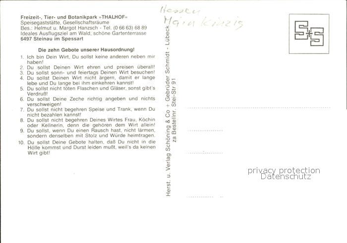 72225948 Steinau Spessart Gaststaette im Freizeit und Tierpark Botanikpark Thalhof postalisch nicht gelaufen Erhaltung siehe scans KatCode: 11110009677155