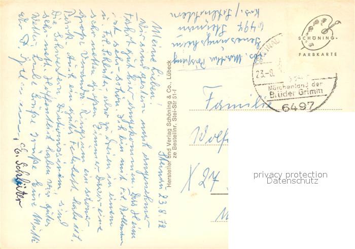 73618444 alte Postkarte Steinau Spessart Panorama Rathaus Katharinenkirche Schloss Pauluskirche postalisch gelaufen Erhaltung siehe scans [FriedD77] KatCode: 11110009677155
