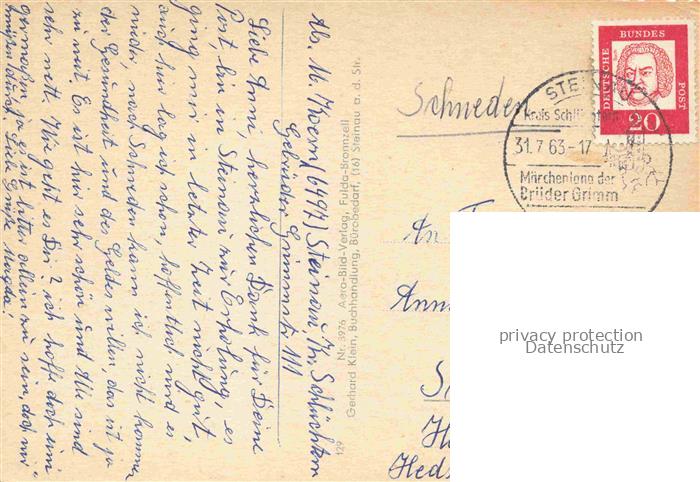 74023508 alte Postkarte Steinau Strasse Fliegeraufnahme mit Schloss postalisch gelaufen Erhaltung siehe scans [WerneD78] KatCode: 11110006435028