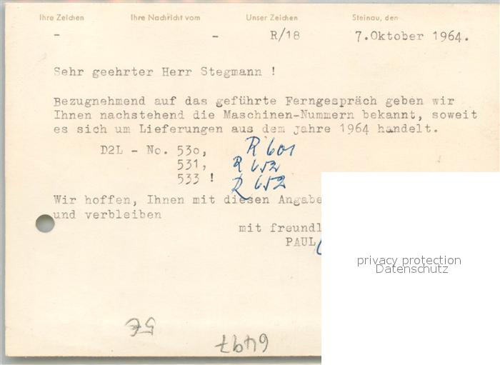 Steinau Strasse PACO Fabrik Paul Geschaeftskorrespondenz