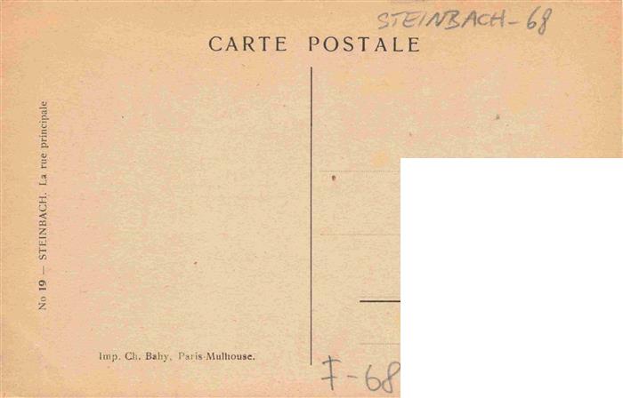 13960356 Steinbach 68 Haut-Rhin Rue Principale Kriegsschauplatz 1. Weltkrieg postalisch nicht gelaufen Erhaltung siehe scans [FriedD77] Frie Katcode 11170068668322