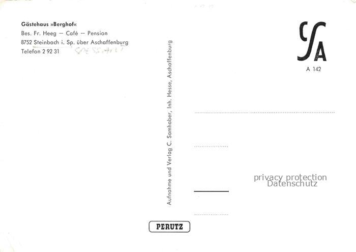 74141528 Steinbach Aschaffenburg Spessart Bayern Gaestehaus Berghof Terrasse Gastraeume postalisch nicht gelaufen Erhaltung siehe scans [FriedD77] KatCode: 11110009671133