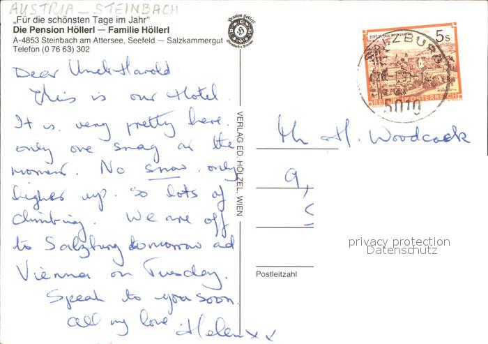 71960093 alte Postkarte Steinbach Attersee Pension Hoellerl postalisch gelaufen Erhaltung siehe scans KatCode: 11390315041740