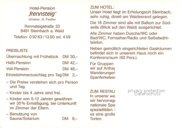 73046077 Steinbach Haide Hotel Restaurant Rennsteig Gaststube Gaestezimmer postalisch nicht gelaufen Werbemarke (keine Postkarte) Erhaltung siehe scans [WerneD78] KatCode: 11110009476152