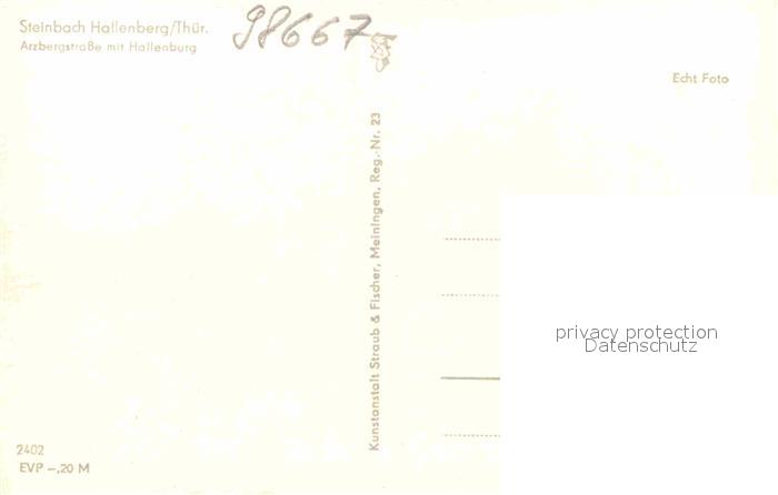 72633725 Steinbach-Hallenberg Arzbergstrasse mit Hallenburg postalisch nicht gelaufen Erhaltung siehe scans [FriedD77] KatCode: 11110016066063