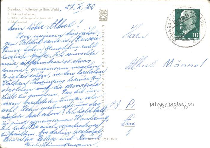 72411290 alte Postkarte Steinbach-Hallenberg FDGB Erholungsheim Schwimmbad Hallenburg postalisch gelaufen Erhaltung siehe scans KatCode: 11110016066063